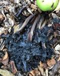 weißlich, später grau, alt schwarz zerfließend, dickfleischig. |