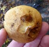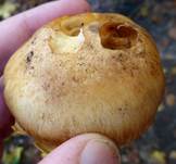 bräunliche Sporenpulverreste, gerandete Knolle, die bis 4 cm Ø sein kann.