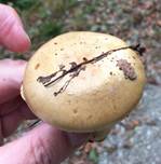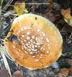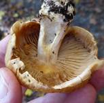 darunter ockergelb durchgefärbt, oft über den Lamellen mit grauer Zone