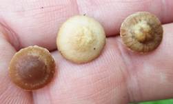 1-1,5 (2) cm Ø, dattelbraun, rötlichbraun, orangebraun, hygrophan,
