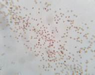 Hellbraun, relativ dick, im Hut braun, wässrig. |