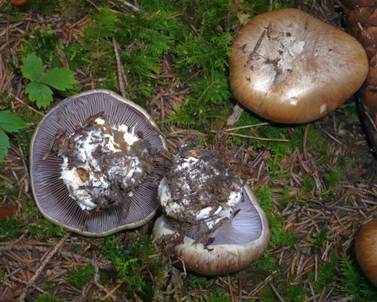 eventuell ohne Knolle, Cortina weißlich-lila. |