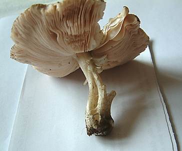 grauweiß. Spitze ist leicht vom Hutfleisch abtrennbar. |