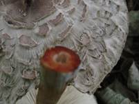 wolligen, abstehenden Schüppchen. Rand flockig, fransig, zottig, ganz jung eiförmig, später halbkugelig. |
