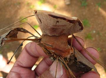 Weißlich bis purpurnbraun, ca. 4 cm lang. |
