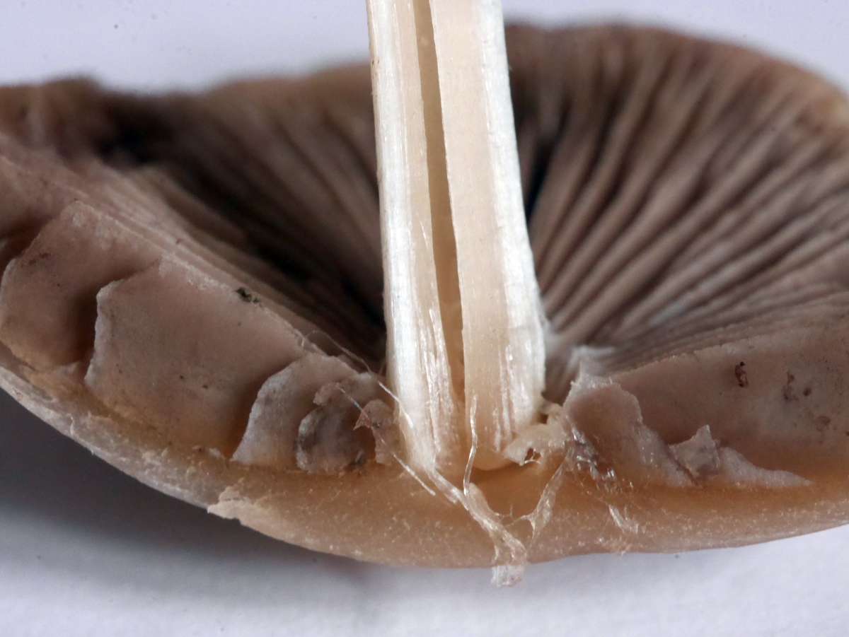 weißlich bis hellocker gezont ausblassend, jung mit Velumresten. |