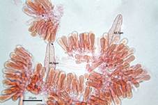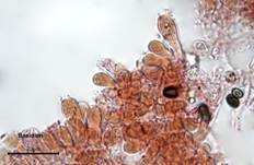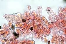 viersporig, Cheilozystiden vereinzelt in Gruppen, Kaulozystiden viele
