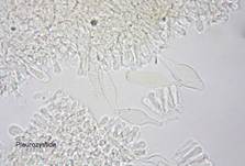 vorhanden, Pleurocystidia ca. 50 x 15 µm, utriform, nur vereinzelt findbar,