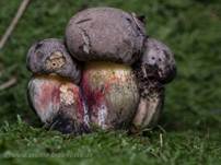 Hexenröhrling mit roten Röhrenmündungen, Wurzelnder