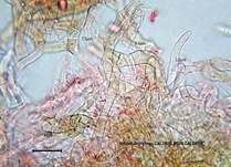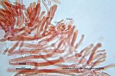 Gelblich, auf Druck blauend, ausgebuchtet angewachsen, feine Mündungen. |