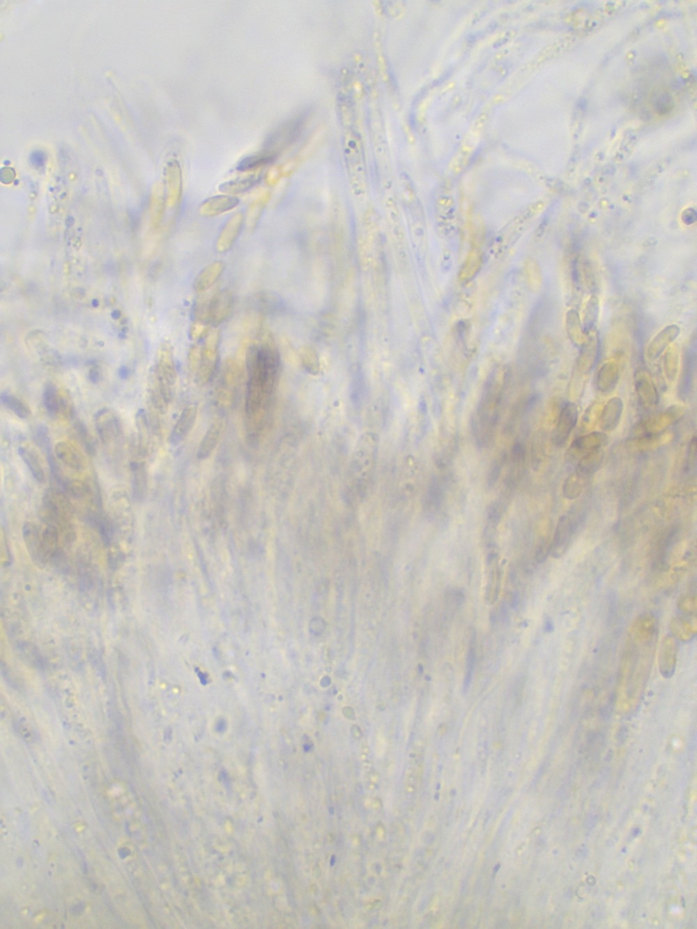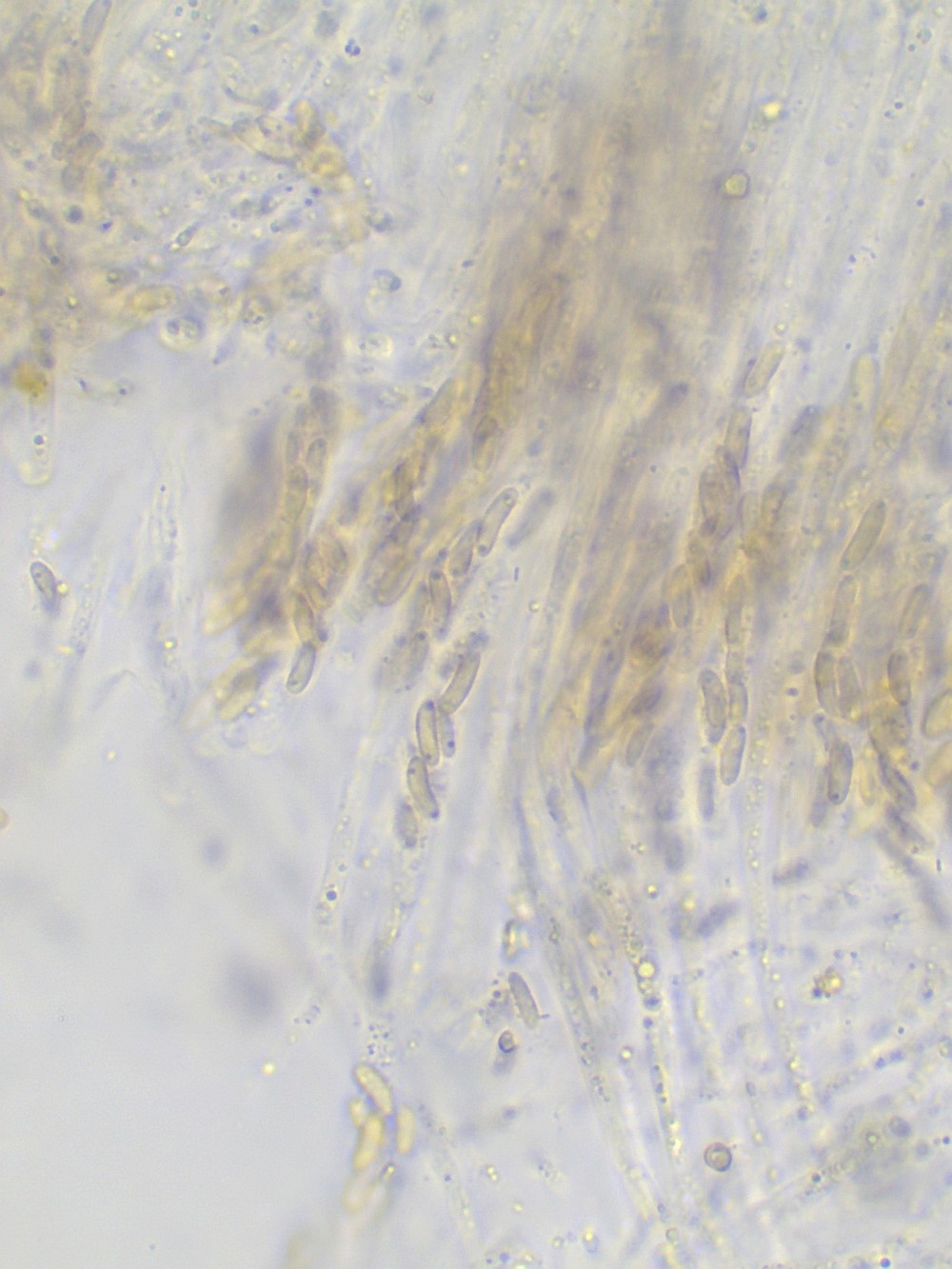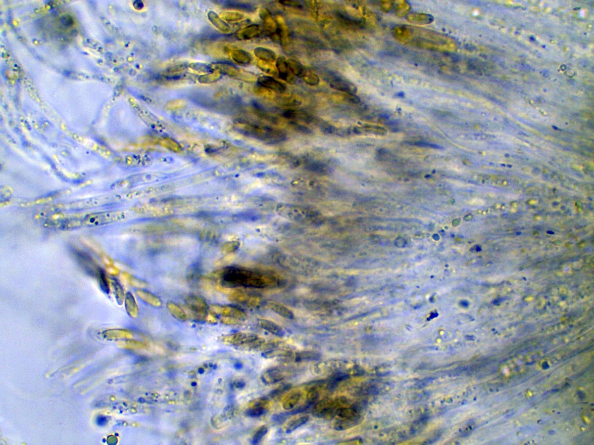 aber +/- zylindrisch. Asci 24-35 x 5-6 µm. Konidien 10,5-18 x 2-3 µm, Konidienbildende Asci 11,5-21 x 2,5-4 µm, tragender Teil mit langen, sich