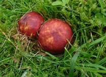 später ausgebreitet. Huthaut matt, nicht bereift, feucht glänzend, gut und fast