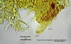 57-100 x 4-13,5 µm, zylindrisch-keulig. Hutdeckschicht mit schlanken,