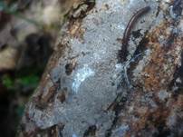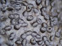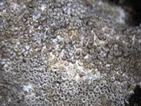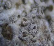 0,2-0,4 x 0,2-0,3 mm, flächig 5-15 (30) cm Ø, grau, grauweiß, hell ockerfarben, pulvrig weißlich, blauweiß, graubraun, manchmal