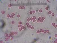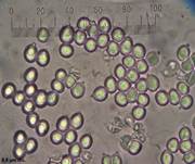 Braun (4-7 x 3,5-6,5 μm, subglobose, manchmal