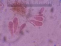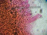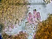Basidien 15-30 x 4,5-8 µm, gespalten, mit 4 geraden