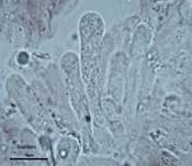 Stiel ausgebuchtet angewachsen. |