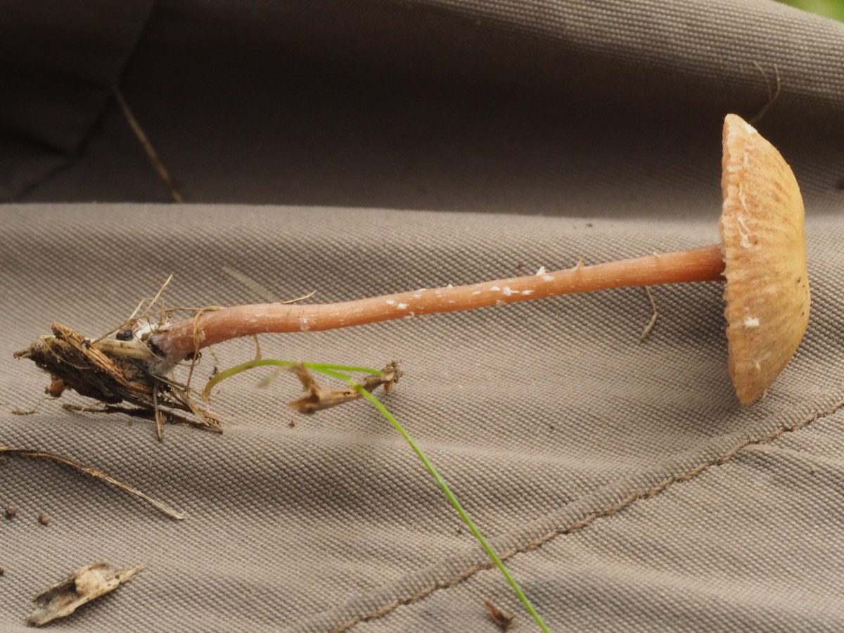 1-3 (4) mm Ø dick, grau ledergelb, kleinen weißen Schuppen bedeckt, röhrig,