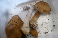 KOH Fleisch lilagrau, auf Huthaut dunkel kastanienbraun, später